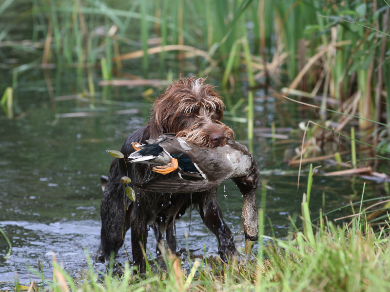 Bij de Korthals Griffon zit werken in het bloed. Als hij dankzij de jachttraining begrijpt wat de bedoeling is, gaat deze hond ook zeker heel graag voor de baas aan de slag.