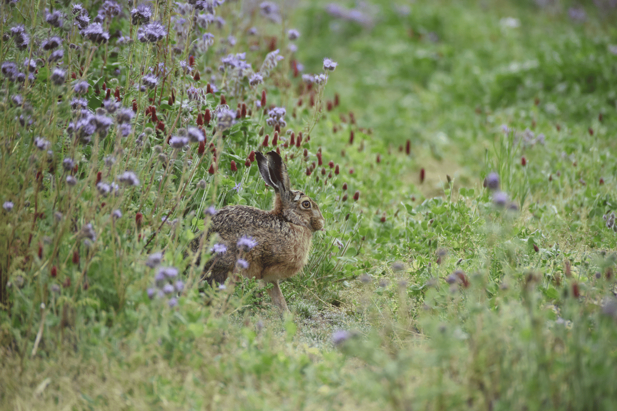 Jonge haas in een bloemrijke akkerrand (Foto door Robert-Jan Asselbergs)